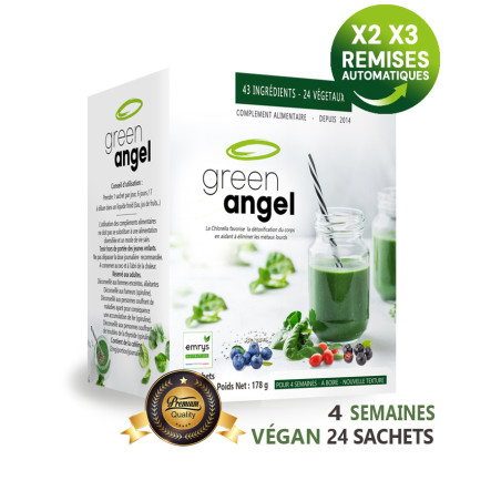 Green Angel est une synergie exceptionnelle de 24 végétaux, de vitamines dont la forme méthyl, de minéraux dont le magnésium bisglycinate... Notre Best Seller depuis 2014, ici dans sa toute dernière version mise à jour.